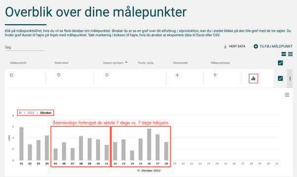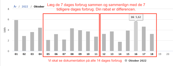 Din strømbesparelse er baseret på de sidste 7 dages forbrug, sammenlignet med de foregående 7 dage.