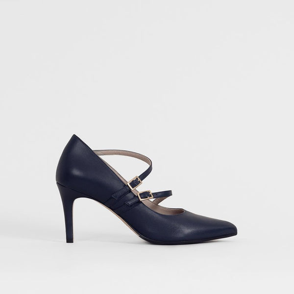 Vores superpopulære klassiske pump med 6,5 cm hæl, i en uendelig anvendelig navy farve. Den er skøn at have på, takket være den specielle videnskabeligt validerede ortopædiske indersål, som aflaster trykket på dine fødder, ligesom de to asymetriske stropper sikrer optimal komfort.
